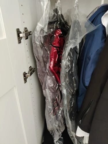 Dentro de cada una de nuestras bolsas puede colgar en sus respectivas perchas hasta 3 prendas, haciendo así mucho más eficiente el espacio que va a ahorrar en su armario.